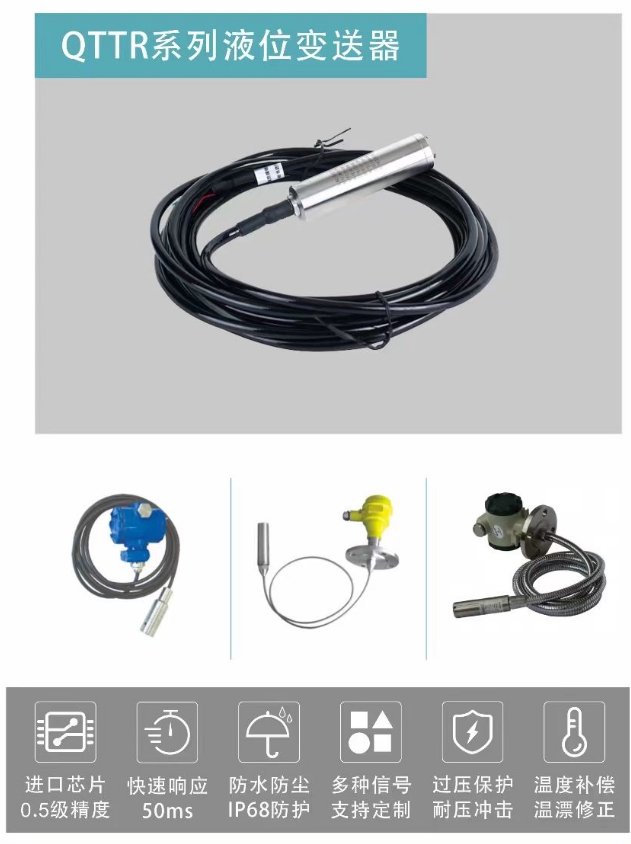 投入式一體液位變送器可于水廠、污水處理廠、城市供水、高樓水池、水井、礦井、工業水池、水罐、油池、油罐、水文地質、水庫、河道、海洋等場合。