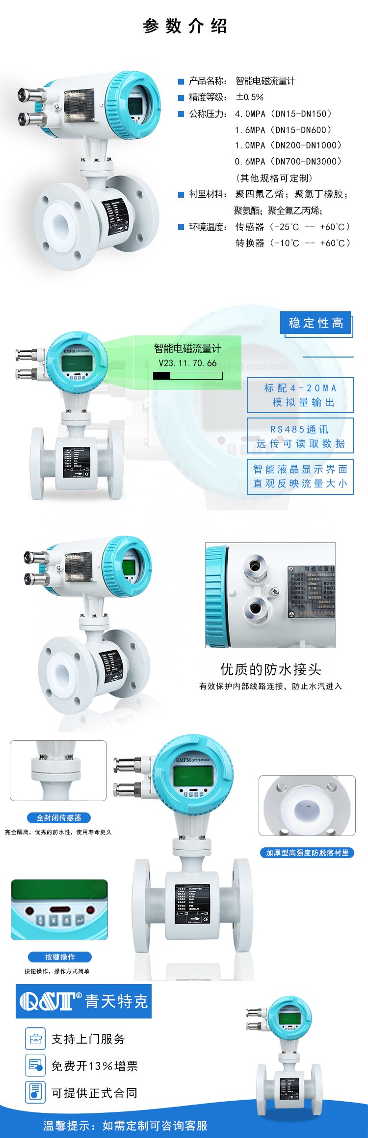 ★  被測液體最低電導率≥5μs/cm,配合各種襯里材料,可適用于測量各種酸、堿、鹽溶液及