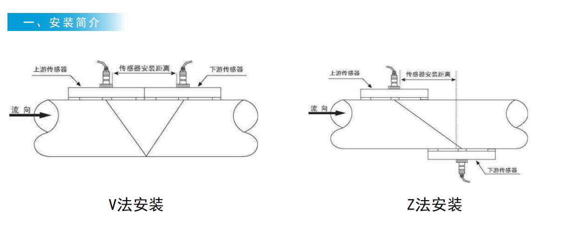 便攜、外貼超聲波流量計安裝V法安裝與Z法安裝